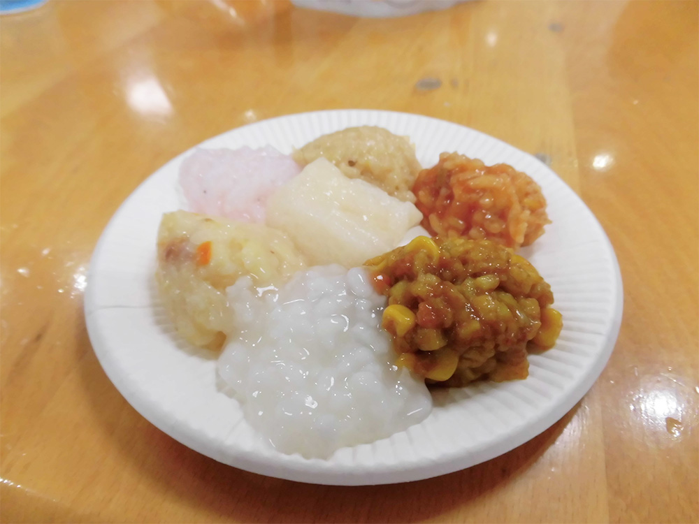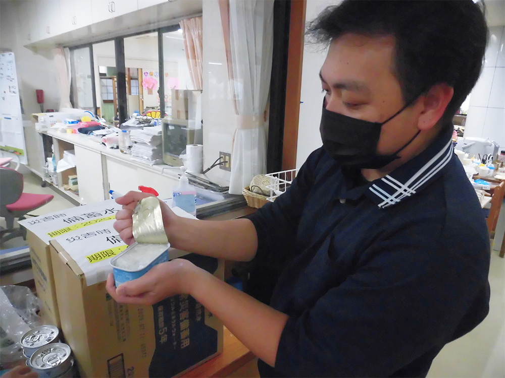 例えばお粥の缶詰の蓋が非常に固く、開封にかなりの力を要することや非常食の味がやや濃く感じられるため、塩分制限のある方への提供方法に工夫が必要であることなどが挙げられました。